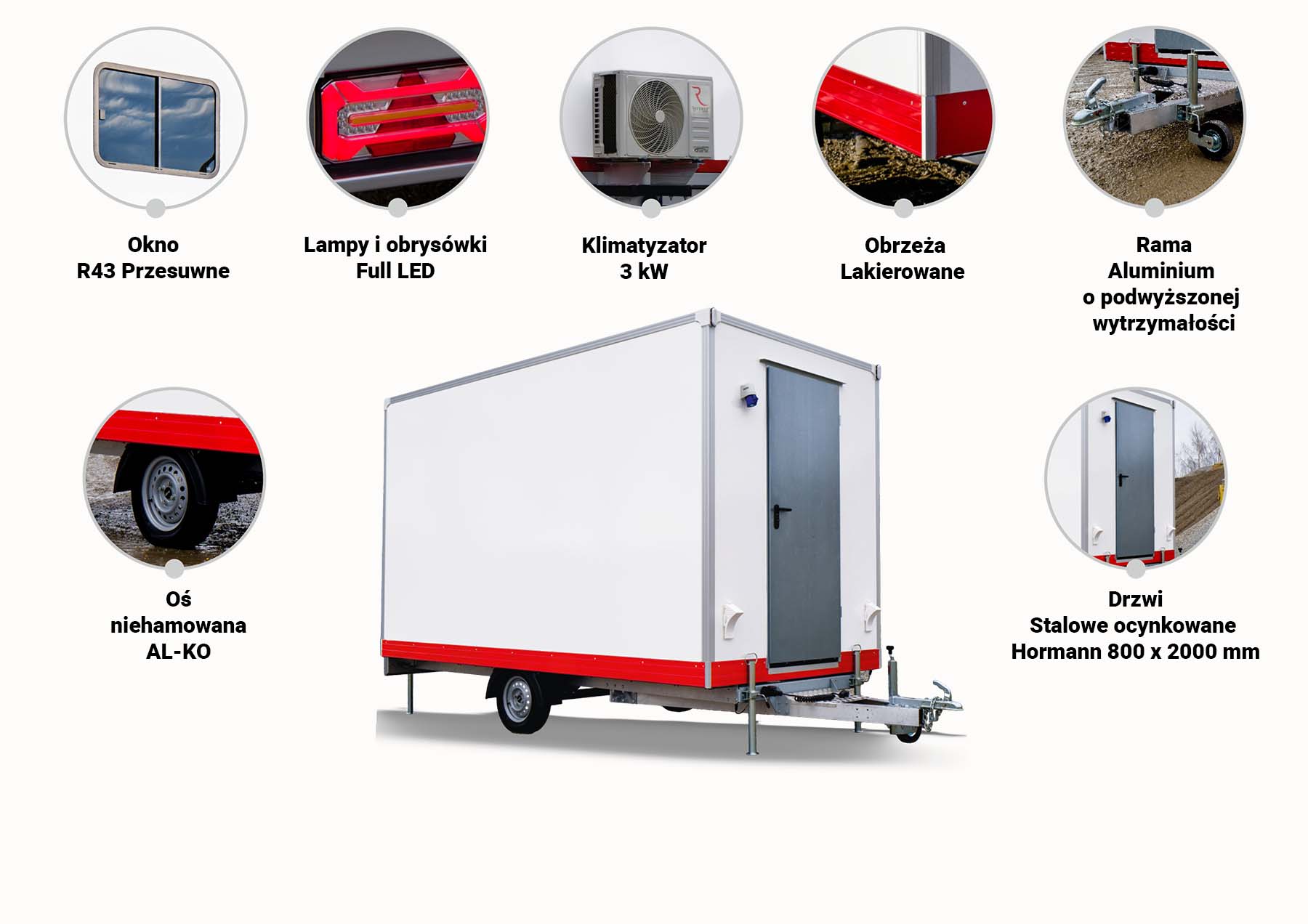 | Układ elektryczny | Zewnętrzne przyłącze 230V, gniazda std - 7 szt. |